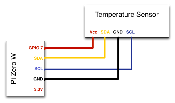 The sensor has four pins: VCC, Data, Ground, and Clock. It also supports both one-wire mode and i2c mode. One-wire mode is clockless, so only VCC, Data, and Ground are used. We want i2c mode, which requires us to power the sensor (via VCC) only after the Clock pin is set high.